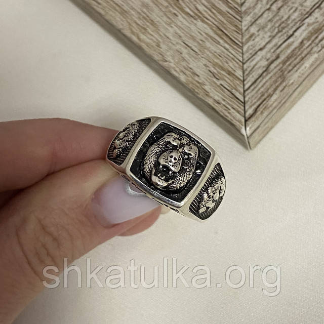 Срібна печатка ведмідь срібна з чорнінням чоловіча