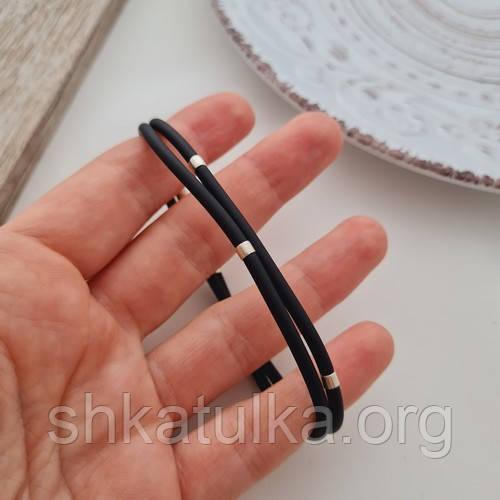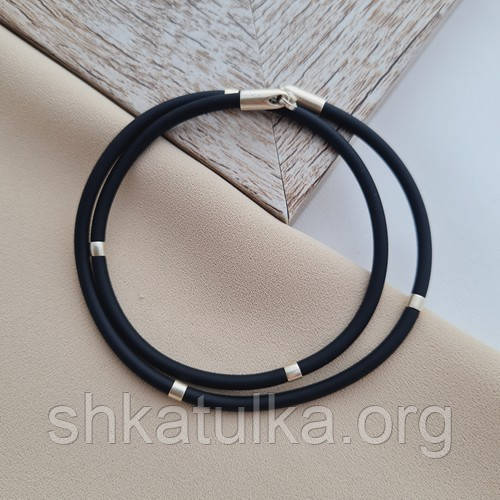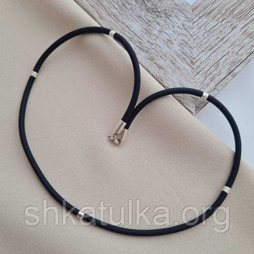 | Кольє каучукове чорне зі срібними вставками | Кольє каучукове чорне зі срібними вставками |