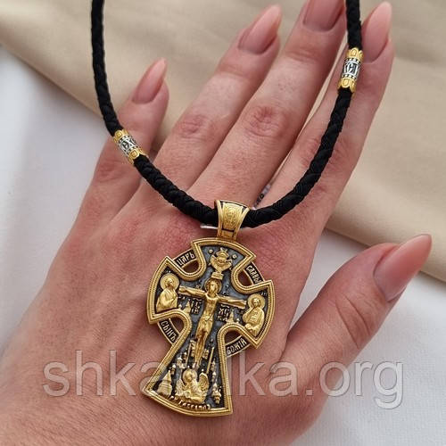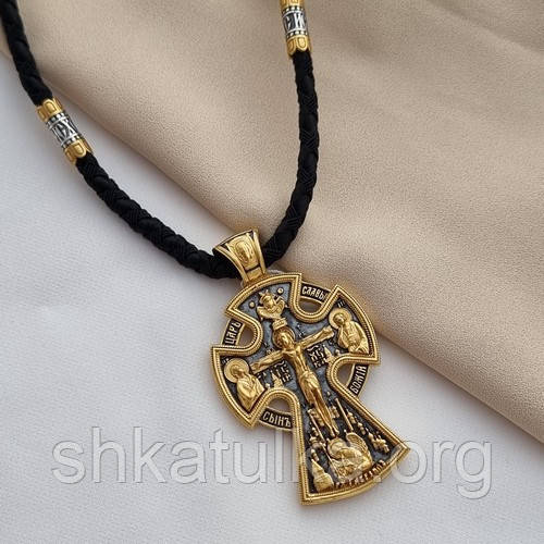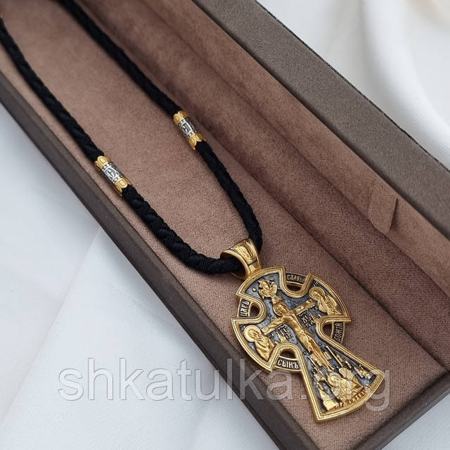 Метал: Срібло 925. Вага хреста: 23.86 г. Вага шнурка: 10.41 гр. Розмір: 45-70 Покриття: чорніння, позолота. Виріб буде упакований у подарунковий пакетик.