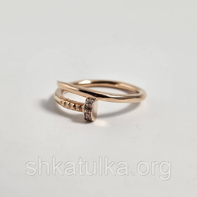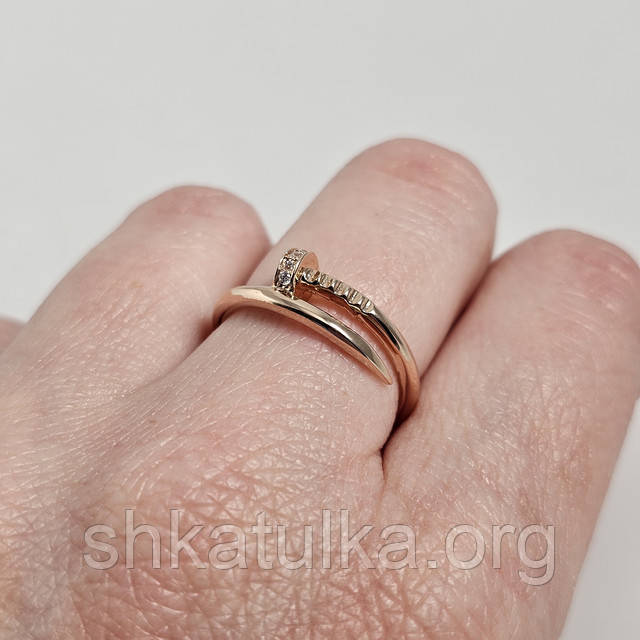 Каблучка золота цвях з білими круглими фіанітами