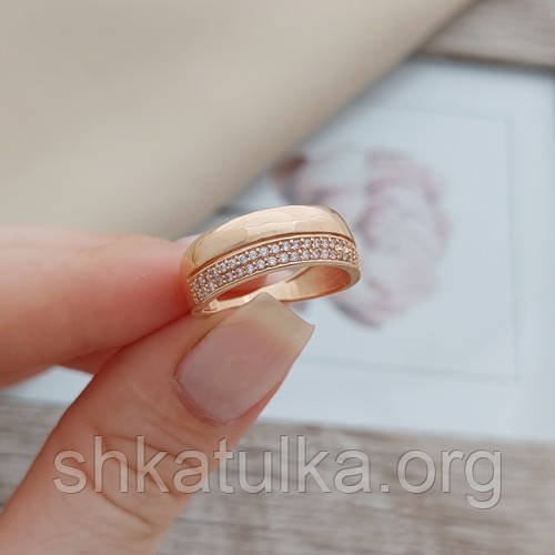 Каблучка золота з двома доріжками з білих круглих фіанітів 3.64