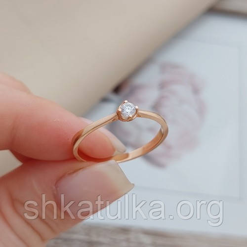 Каблучка золота з білим круглим фіанітом в класичне 1.45