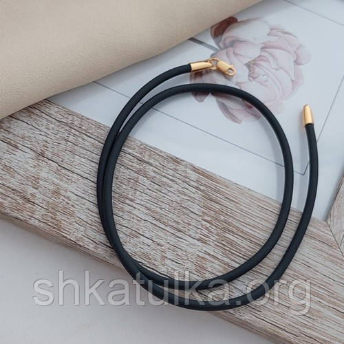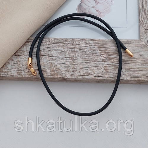 | Кольє з каучуку чорне з позолоченою застібкою 40 см | Кольє з каучуку чорне з позолоченою застібкою 40 см |
