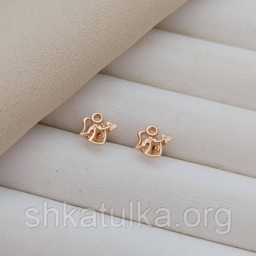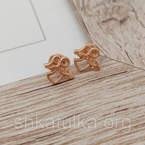 Сережки вкрутки золоті ангели з сердечками без каменів 1.27