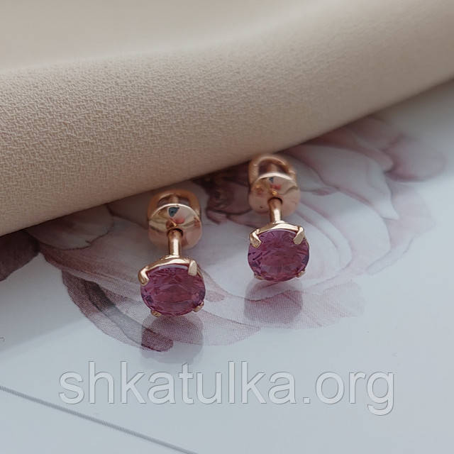 | Сережки вкрутки золоті з бузковим круглим аметистом 1.52 | Сережки вкрутки золоті з бузковим круглим аметистом 1.52 |