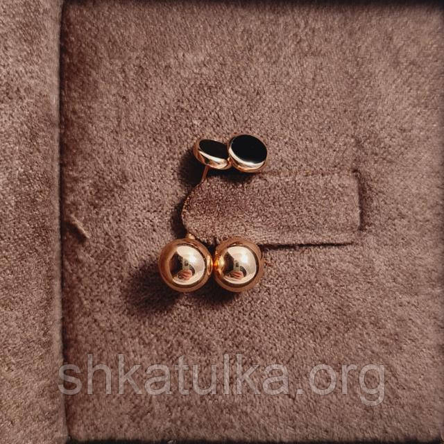 | Сережки вкрутки з золота з гладкою намистиною і чорною емаллю | Сережки вкрутки з золота з гладкою намистиною і чорною емаллю |