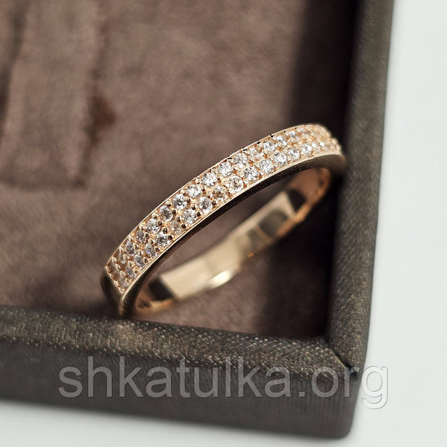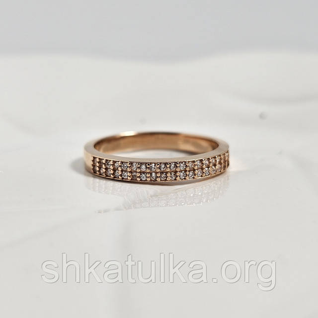 | Кільце із золота з доріжками з білих круглих фіанітів | Кільце із золота з доріжками з білих круглих фіанітів |