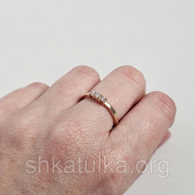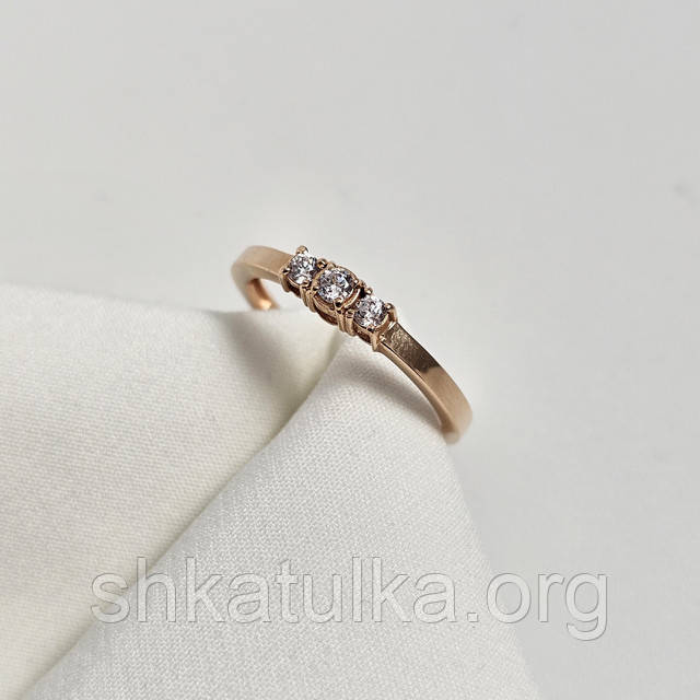 Каблучка з золота з трьома білими круглими фіанітами в центрі