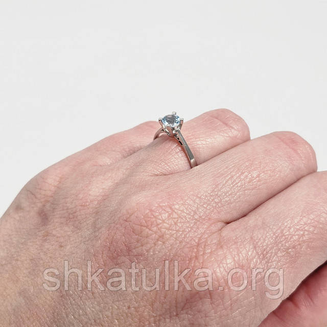 Каблучка з білого золота з блакитним круглим топазом каблучка для заручин