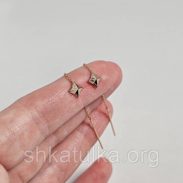 | Сережки протяжки золоті із золотими підвісками без каменів | Сережки протяжки золоті із золотими підвісками без каменів |