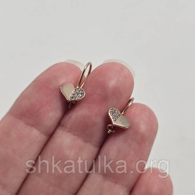 | Сережки золоті з сердечками та круглими білими фіанітами | Сережки золоті з сердечками та круглими білими фіанітами |