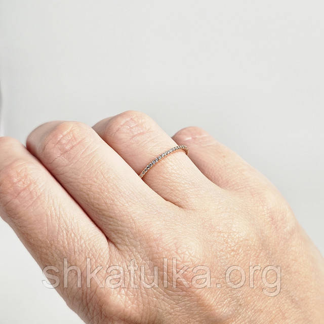 Каблучка із золота тонка з доріжкою з білих фіанітів 18
