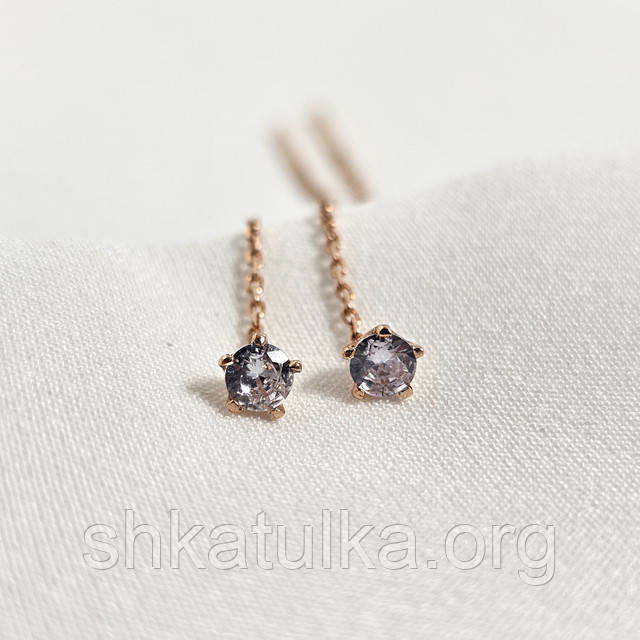 | Сережки протяжки золоті з підвісками білими круглими фіанітами | Сережки протяжки золоті з підвісками білими круглими фіанітами |
