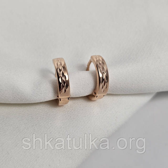 | Золоті сережки кільця з алмазною гранню конго без каменів | Золоті сережки кільця з алмазною гранню конго без каменів |