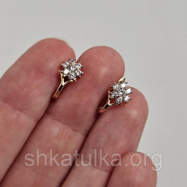 | Сережки золоті у формі квітки з фіанітами білими | Сережки золоті у формі квітки з фіанітами білими |
