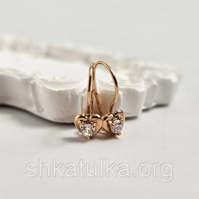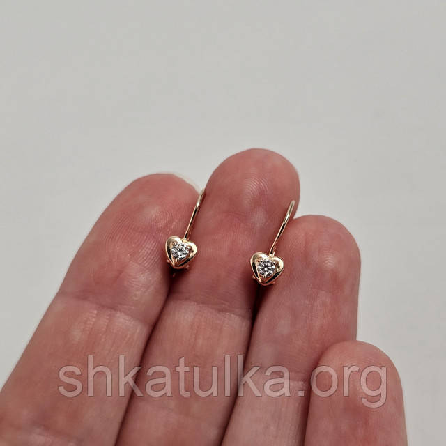 | Золоті сережки серця з білим каменем фіанітом | Золоті сережки серця з білим каменем фіанітом |