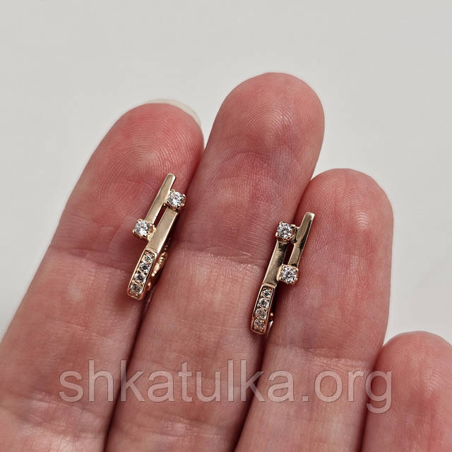 | Сережки золоті з фіанітами білого кольору різного розміру | Сережки золоті з фіанітами білого кольору різного розміру |