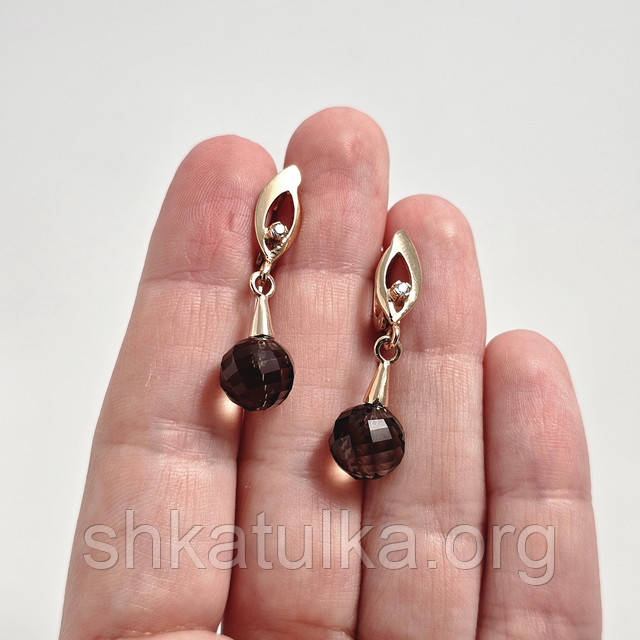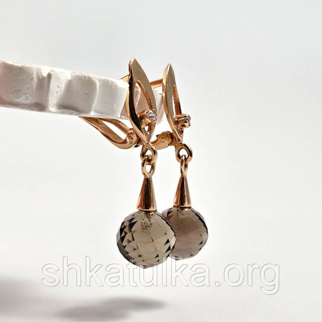 | Сережки золоті з раухтопазом і фіанітами білого кольору | Сережки золоті з раухтопазом і фіанітами білого кольору |
