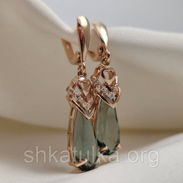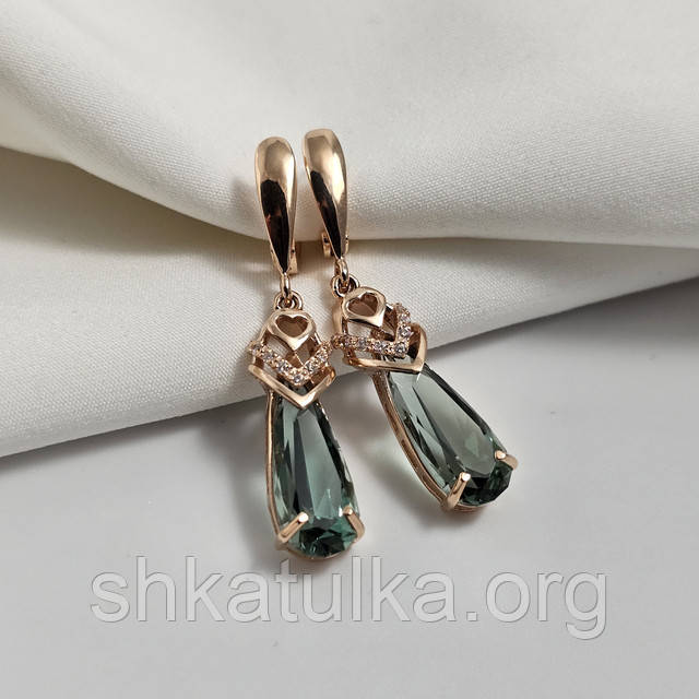 | Сережки золоті з краплеподібним каменем кварцу та фіанітами | Сережки золоті з краплеподібним каменем кварцу та фіанітами |