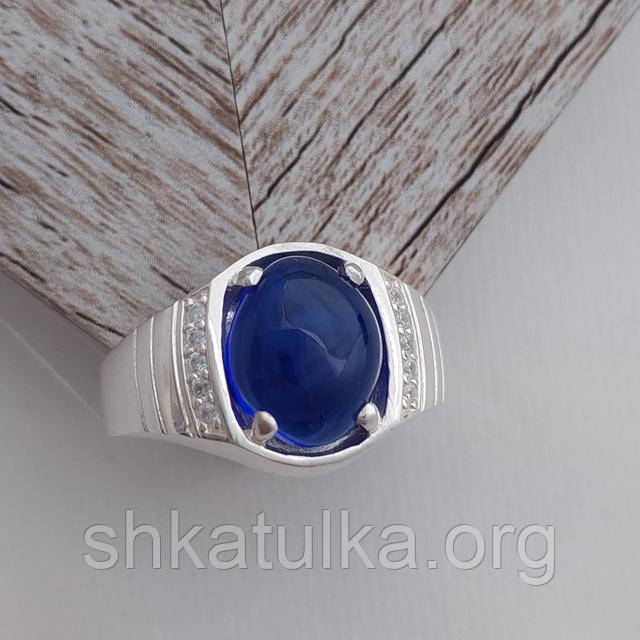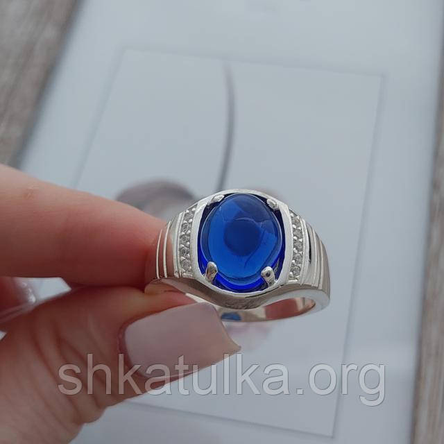 Перстень срібний з овальним сапфіром і білими круглими фіанітами